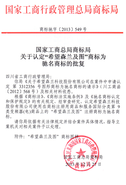 领军民族变频产业 希望伟德体育官方网站变频器喜获“中国驰名商标”称