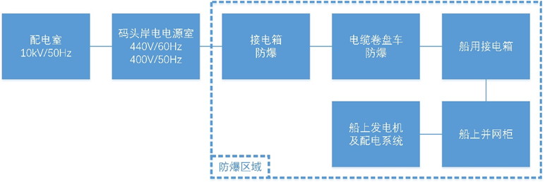 2016年底,由希望伟德体育官方网站科技股份有限公司与上海艾临科智能科技有限公司联合为嘉港石化码头提供了全新设计的专用于危险区域的SB70防爆型智能岸电电源系统解决方案。该系统将10kV/50Hz电源转变为440V/60Hz及400V/50Hz可变双频双压输出至码头防爆接电箱,需要连船时将接电箱与移动式防爆电缆卷盘车连接,再由卷盘车将电缆举升至改造后的船用接电箱处连接,进行岸电向船电的输送。