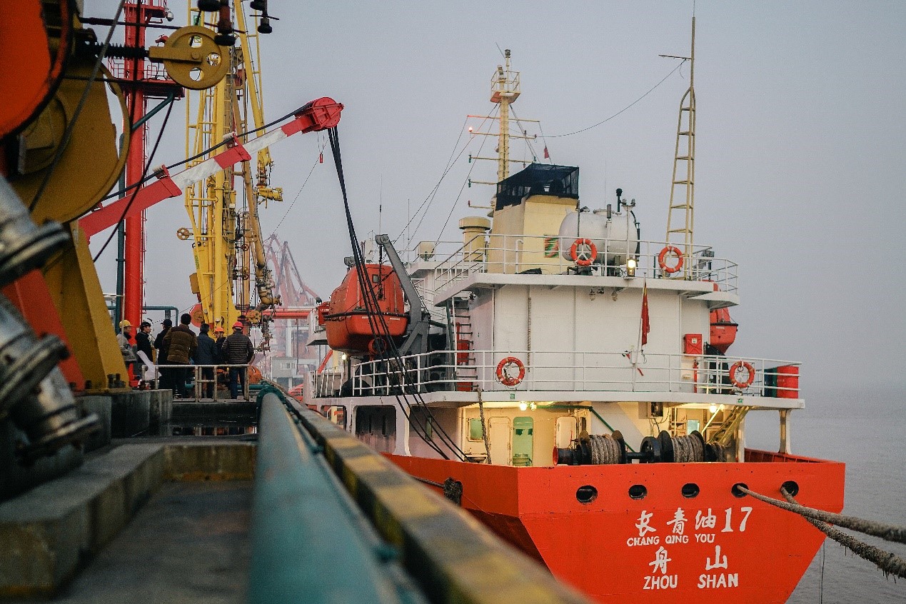 “呜——!”,一声悠长的汽笛声打破了嘉港石化码头的宁静,一艘装满油品的货轮缓缓驶入泊位。一名码头工作人员熟练得操作电缆卷盘车,将三根电缆轻松举升至货轮左舷,接到船用接电箱上,合上开关。随即,货轮上轰鸣的辅机停止了运行,岸电为靠岸船舶的后续作业提供了绿色能源。