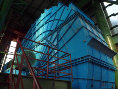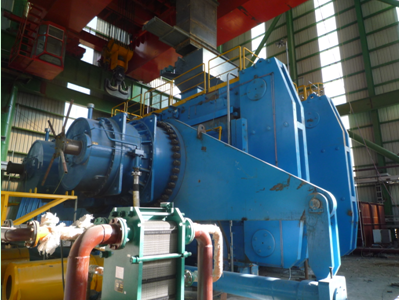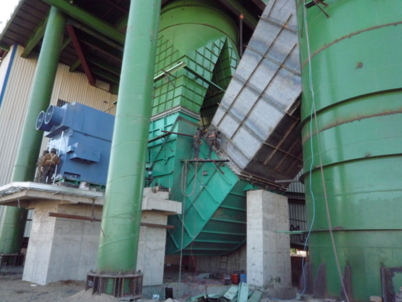 另一个是流量达到2000000 m³/h ,全压达到5900 pa ,功率为5000KW的系统风机。而我们伟德体育官方网站高压变频器改造的就是这台系统风机,变频器型号为SBH-100-5600。经过打散粉碎后的物料在挡料锥的导向作用下通过挡料锥外围的环形通道进入在风轮向分布的风力分选区内。物料的分级中的粗颗粒物料由于其运动惯性大,在通过风力分选区的沉降过程中,运动状态改变较小而落入内锥筒体被收集,由粗粉卸料口卸出返回,同配料系统的新鲜物料一起进入辊磨机上方的称重仓。细粉由于其运动惯性小,在通过风力分选区的沉降过程中,运动状态改变较大而产生较大的偏移,落人内锥简体与外锥筒体之间被收集。