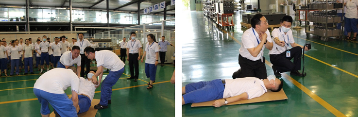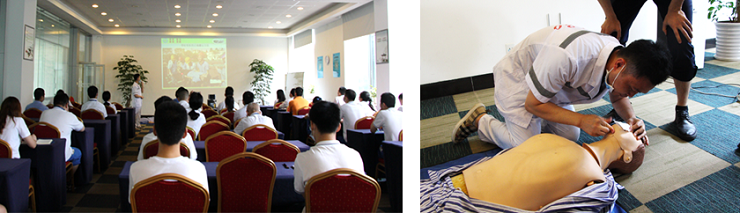 6月15日,公司聘请现代医院急救科专家到现场进行急救知识培训,并针对员工提问作出专业的解答。