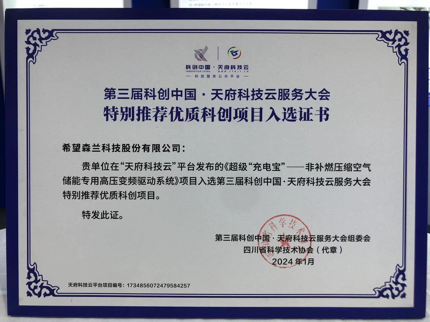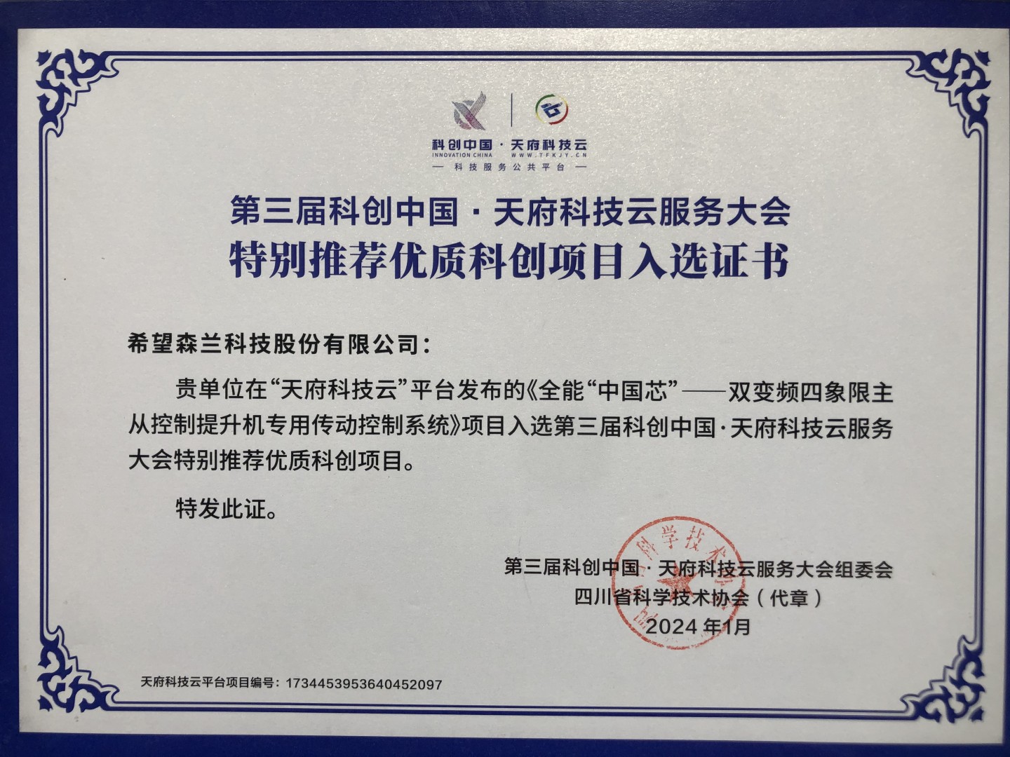 本届大会面向大院大所大企业等征集到科创项目8700个,希望伟德体育官方网站科技股份有限公司作为国内专业从事传动控制技术研究的领军企业,凭借硬核解决方案成功吸引了大会的关注。不仅被选为本届重大高新技术待推广项目,还荣获了“特别推荐优质科创项目”奖项。