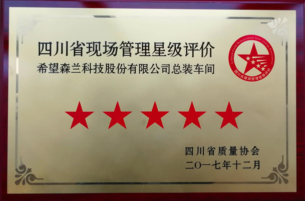 2018年1月4日,公司总装车间被评为“四川省现场管理星级评价五星级现场”。同期荣获五星级现场的公司还有通威太阳能(成都)有限公司、中国核动力研究设计院设计所、中国兵器装备集团自动化研究所。