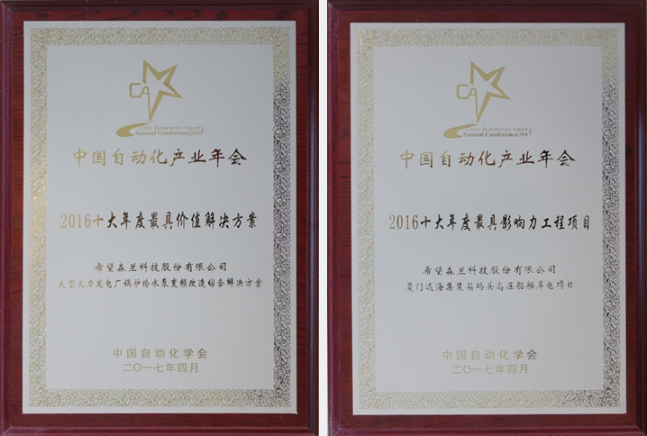 中国自动化领域年度奖项评选现场,希望伟德体育官方网站科技股份有限公司荣获“2016中国自动化领域十大年度企业”,公司“大型火力发电厂锅炉给水泵变频改造综合解决方案”被评为“2016十大年度最具价值解决方案”,此外,“厦门远海集装箱码头高压船舶岸电项目”获得“2016十大年度最具影响力工程项目”三项重要大奖。